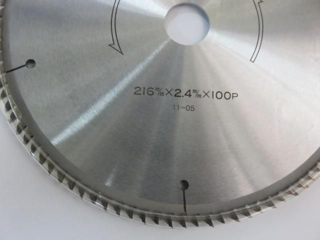 合板などの切断に。切れ味、永切れに自信あります。  外径:216mm 刃厚:2.4mm 刃数:80枚 穴径:25.4mm 中心5本組刃 日本製